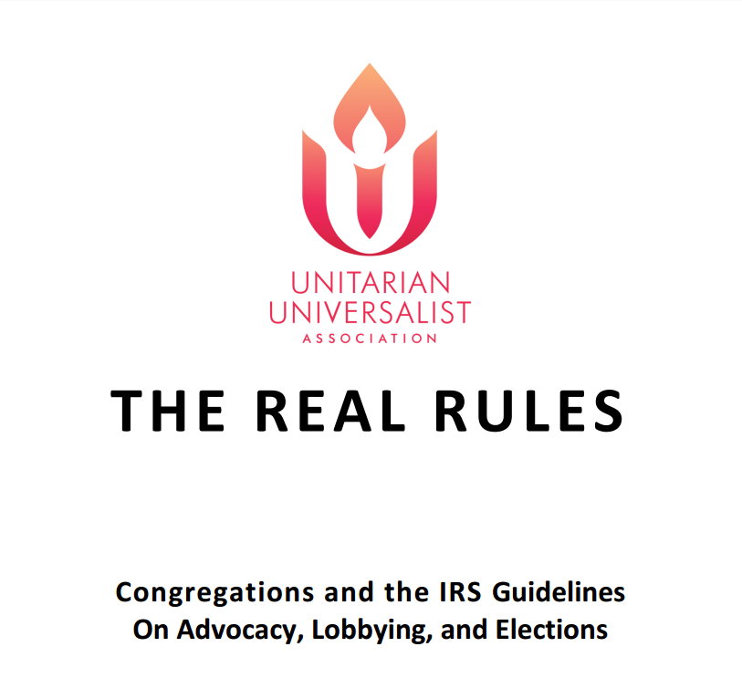 Also, if your congregation is helping with voter registration or other activities, please remember to keep the law in mind. The Real Rules explains how the law impacts what our congregations can and cannot do. Basically you can support or campaign against issues but you cannot support or campaign against candidates.