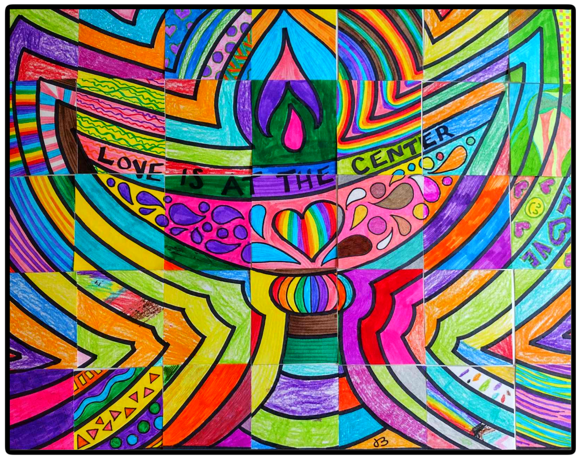 These simple group art projects have been a staple of Jenn Blosser’s work in religious education for children, youth, and adults since 2015. They consist of a large image which has been cut into (relatively) even square tiles. Participants work on coloring in the tiles individually, without knowing what the final image will be. Then, the tiles are assembled to reveal the completed image in all its mish-mash, colorful glory.